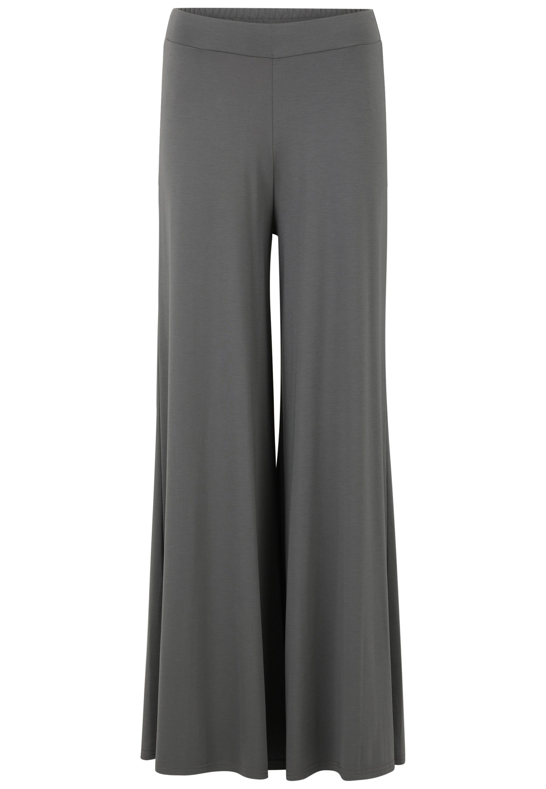 Ob du sie im Office mit einer schicken Bluse kombinierst oder am Wochenende mit einem entspannten Shirt trägst – diese Hose passt sich deinem Alltag an und lässt dich dabei immer modern und selbstbewusst wirken. Der weite Beinverlauf streckt optisch und bringt Bewegung ins Outfit, während das neutrale Grau dir unendlich viele Styling-Möglichkeiten eröffnet.