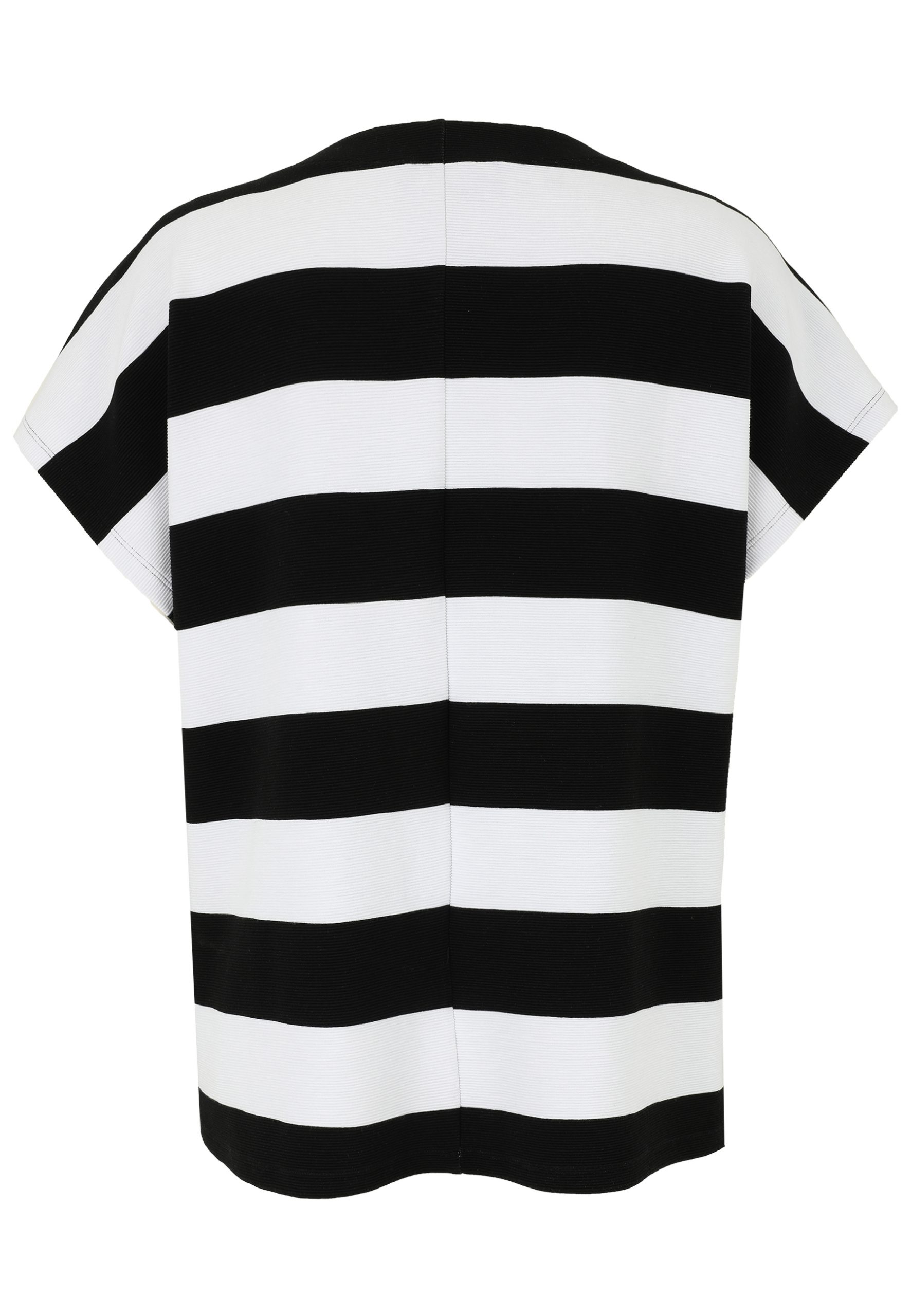 Dieses modische Shirt von Doris Streich verbindet zeitlosen Streifen-Look mit einem modernen, neonfarbenen Statement-Print. Die klaren Schwarz-Weiß-Streifen schaffen eine starke optische Basis, während der leuchtend grüne Schriftzug dem Design einen frischen, urbanen Touch verleiht.